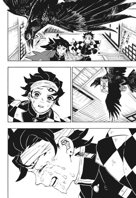 玄弥と無一郎の死亡をカラスから伝えられ涙する炭治郎。敢えて無音にする演出本の虫 さんのマンガツイコミ 仮。