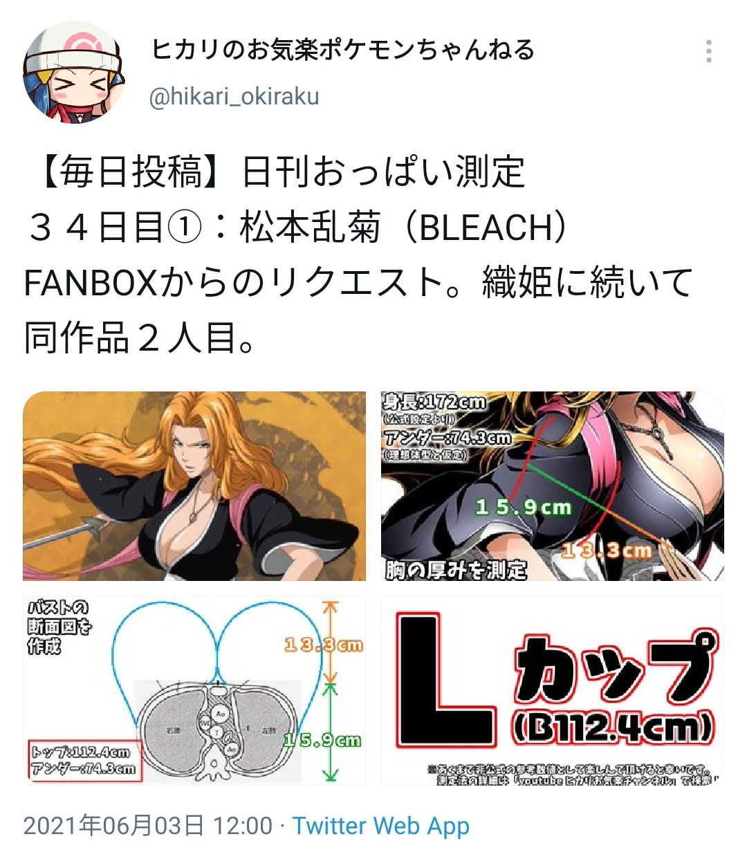 滝沢ガレソ on X: "二次元キャラのバストサイズを毎日計測し続けるアカウント、発見される https:t.co kNFuFbQhPohttps:t.co SPxlz3ksoX"X。