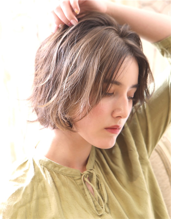 ミルクティーグレージュ50代ベリーショートTikTok。