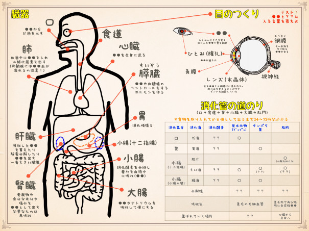 小学生理科「人の体のつくりと働き」のポスタープリント 無料ダウンロード印刷。