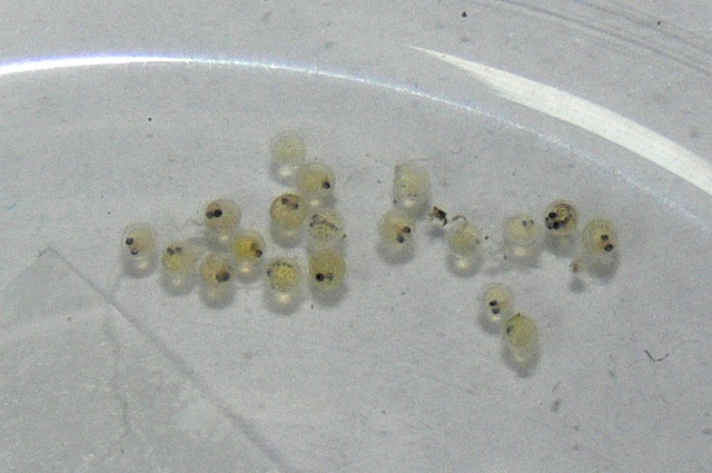 メダカの卵の観察 白濁した卵と、卵の中の眼: Tokuzeのメダカ飼育日記 屋外でメダカを飼おう!。