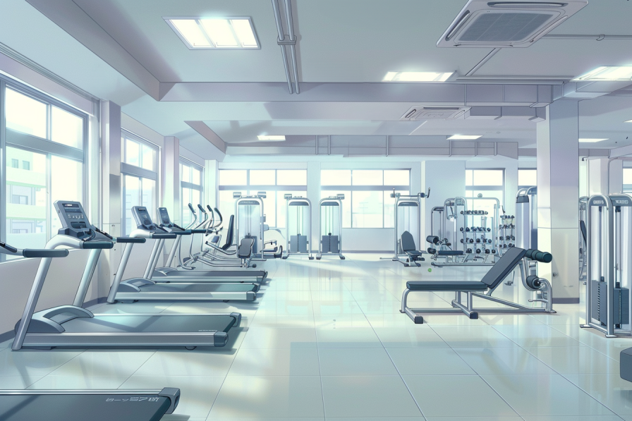 背景素材:明るいジム - 33@素材屋 - BOOTH。
