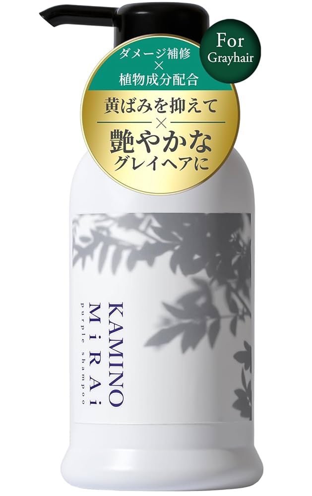 Amazonカミノミライ ムラサキシャンプー 300ml黄ばみのない美しいグレイヘアに導く 日本製 紫シャンプー エイジングケア・トリートメント・植物成分配合ハリ ツヤ きしまないグレイヘア用 カラーシャンプー ハイライトによる黄ばみにもKAMINOMIRAI。