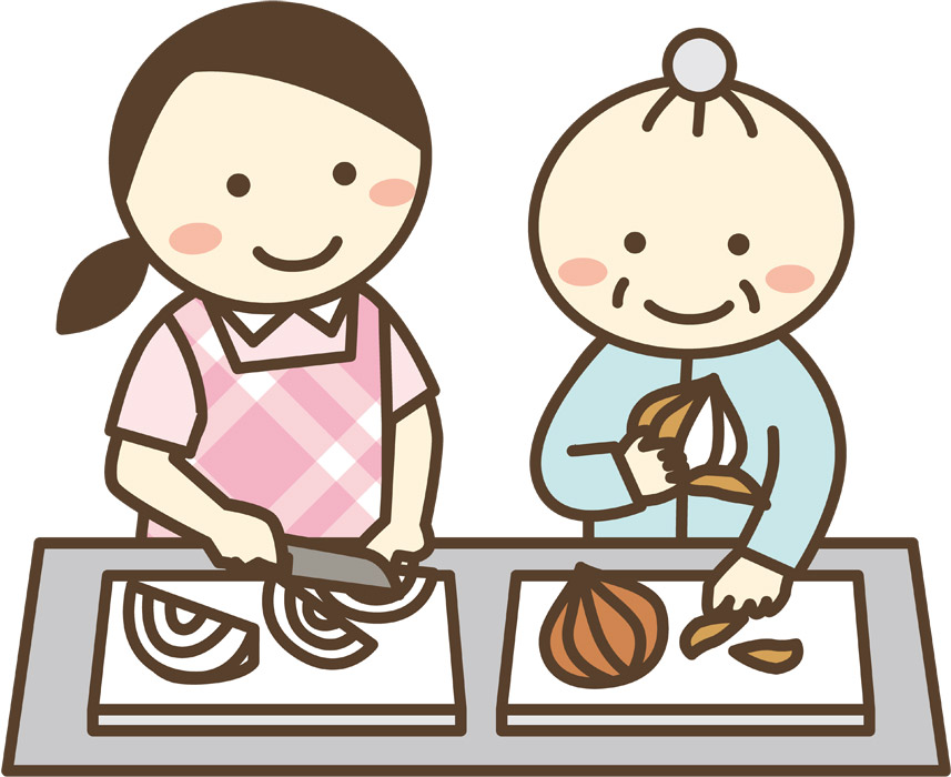 フリーイラスト調理介助するホームヘルパーパブリックドメインQ:著作権フリー画像素材集。