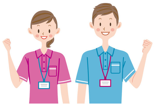 介護福祉士の男性と女性 無料イラスト素材- イラスト素材図鑑。