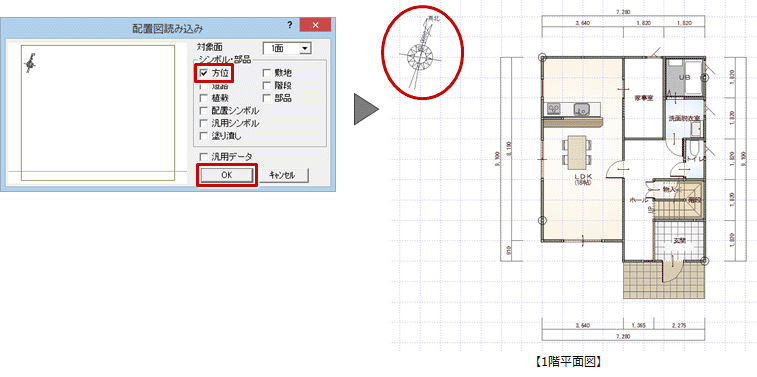 Q:平面図で方位マークを入力する方法を教えてください。 動画FAQ PDF。