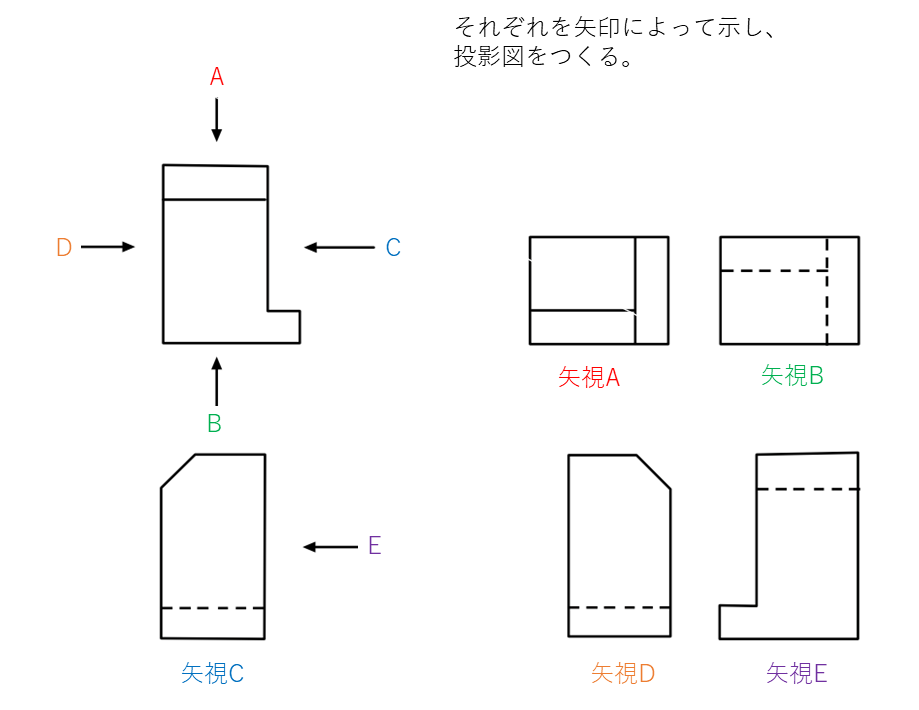矢示法矢印の方向から見たときの投影図 – Hitopedia。
