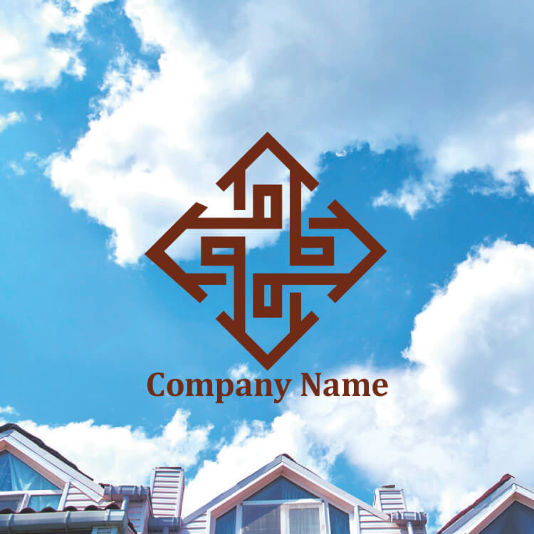 方位ロゴ全方向を指し示す矢印と建物の販売デザイン01595ロゴ販売ロゴ購入と制作依頼サイト。