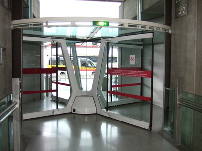 明日はLL魂じゃないか, 導線設計の間違ったエスカレータと回転ドア - ただのにっき 2007-08-03。