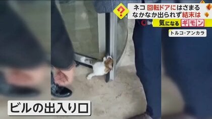 ネコが“回転ドア”にはさまる 前脚や口を使って必死に動くも抜け出せず 通行人たちが協力して救出 トルコFNNプライムオンライン。