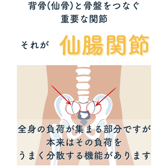 💡 仙腸関節の痛み、全部“そこだけ”が原因だと思っていませんか?, 仙骨 背骨の一番下 と腸骨の間には、ずれや異常発火が起こりやすく、,それが仙腸関節痛の原因になることがあります。, ただし、仙腸関節だけが原因とは限りません。, 筋肉や腰椎の状態が関与していることも多く、,症状から原因を多角的に探る必要があります。, 大切なのは「仙腸関節は治療すべき部位だが、それが全てではない」という視点。,。