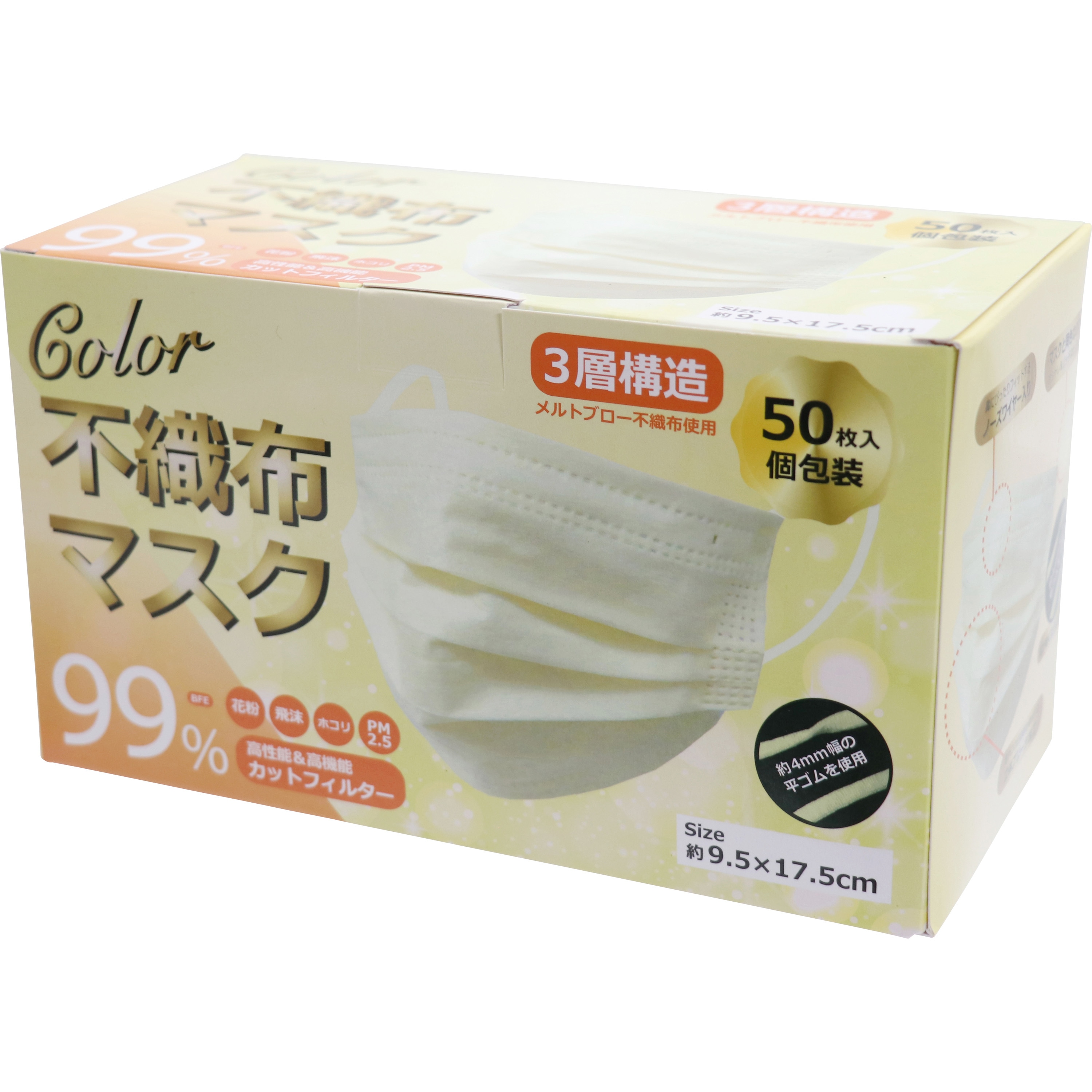 TEC-8 ライトイエロー 個包装カラー不織布マスク50枚 センター商事 プリーツ型 構造3層 耳かけ ライトイエロー色 -通販モノタロウ。