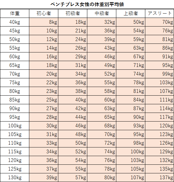 自動計算 ベンチプレスの平均重量は?男女別・体重別の指標を紹介!転勤族のやまちゃんち。