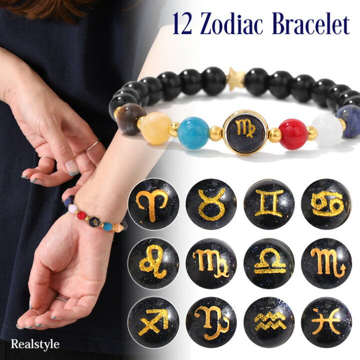 楽天市場 12星座シンボルマークストーンブレスレット 腕輪 レディース メンズ ブレスレット アクセサリー 十二星座 誕生日 贈り物 石 ストーン10mm ゴム ブレス チャーム モチーフ おしゃれ かわいい 小さめ メール便 : REAL STYLE リアルスタイル。