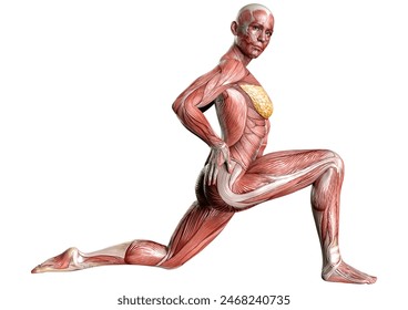 女性の胸と腹部の筋肉の解剖図3Dイラスト — ストック写真 © My_box_pra664998862。