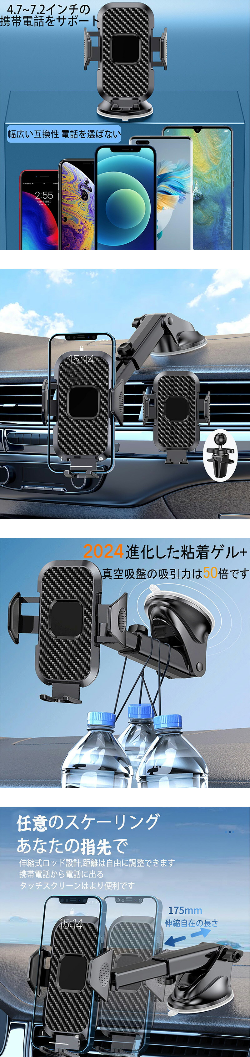 楽天市場 スマホホルダー 車載用2024年進化 超強力粘着ゲル吸盤 安定性アップ スマホスタンド 車 2in1 真空吸盤&送風口兼用 全車種対応360度回転 伸縮アーム 車載スマホホルダー 車用品 片手操作 自由調節 取付簡単 iPhone SE 15 14 13 12Pro4.7-7.2インチ全機種。