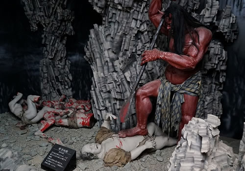 成田山久留米分院にある救世慈母大観音像と地獄道 - 九州大図鑑。