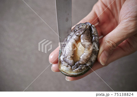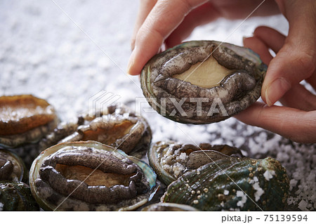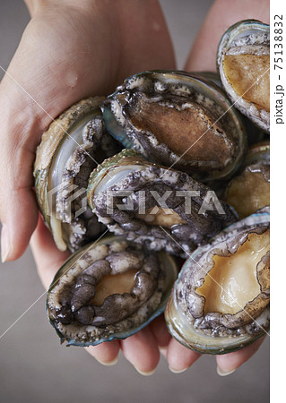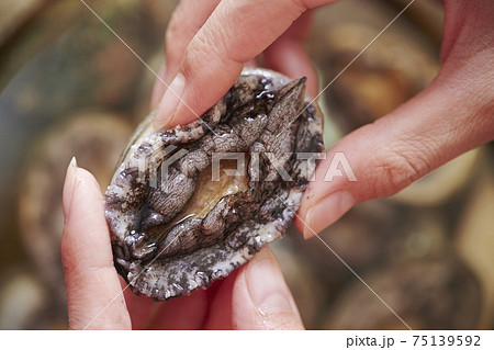 新鮮なアワビを持つ女性の手の写真素材75138832- PIXTA。