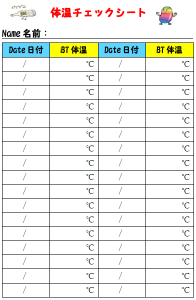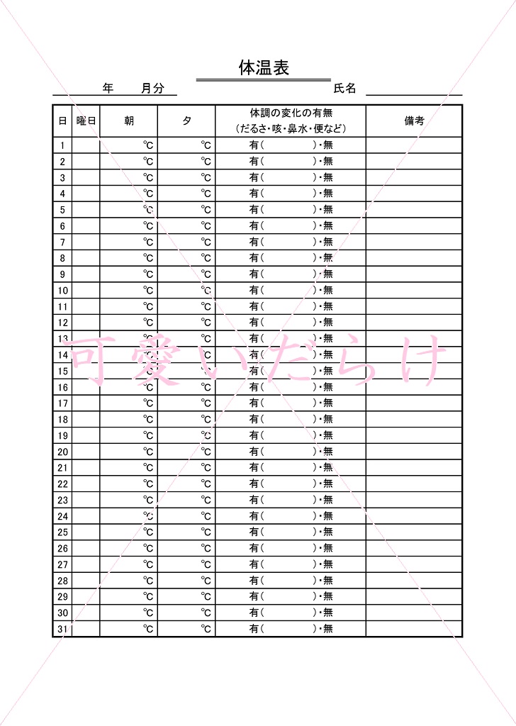 毎日の検温チェックに使える1ヵ月分の「体温表」小学校のコロナ対策や子供の健康管理におすすめ!無料テンプレート可愛いだらけ。