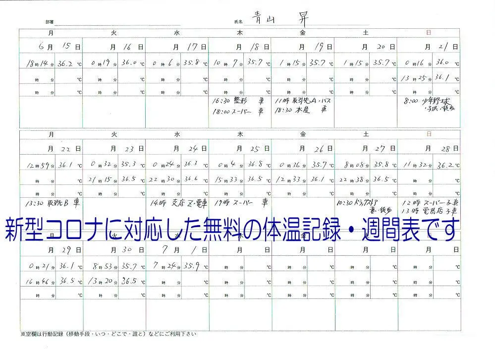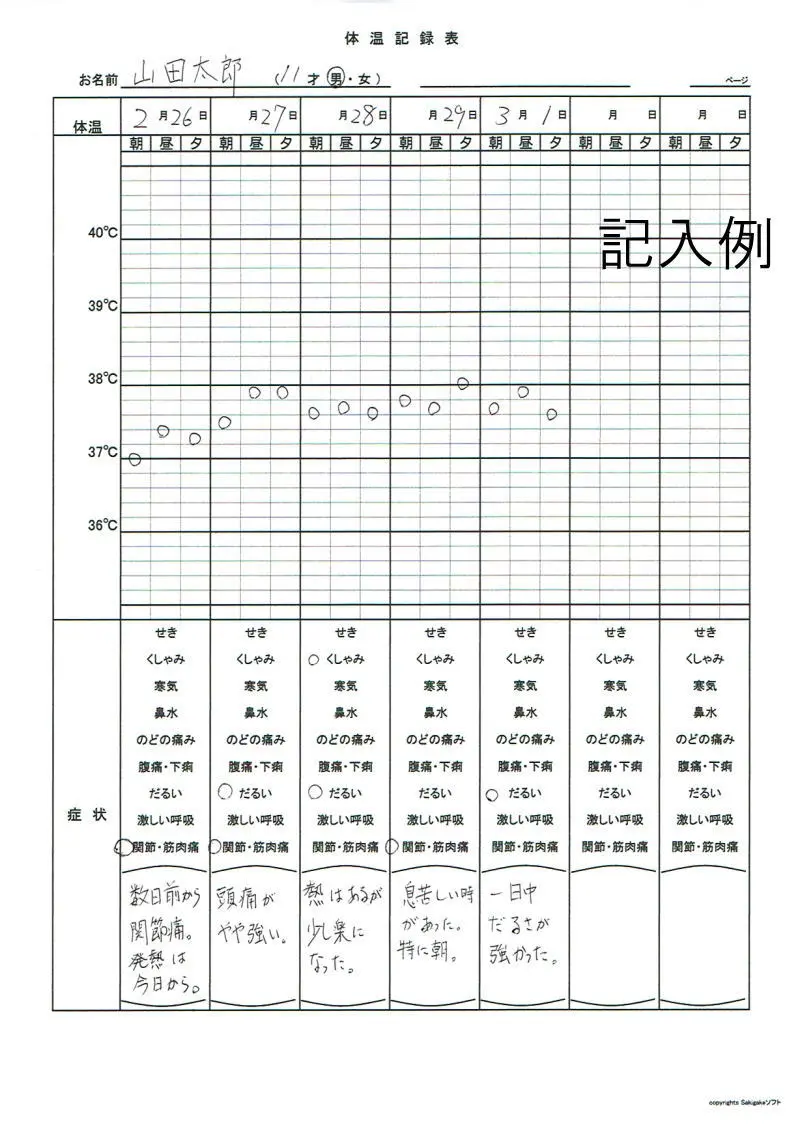 新型コロナウイルス対応 無料体温記録表 A4・PDFSakigakeソフト。