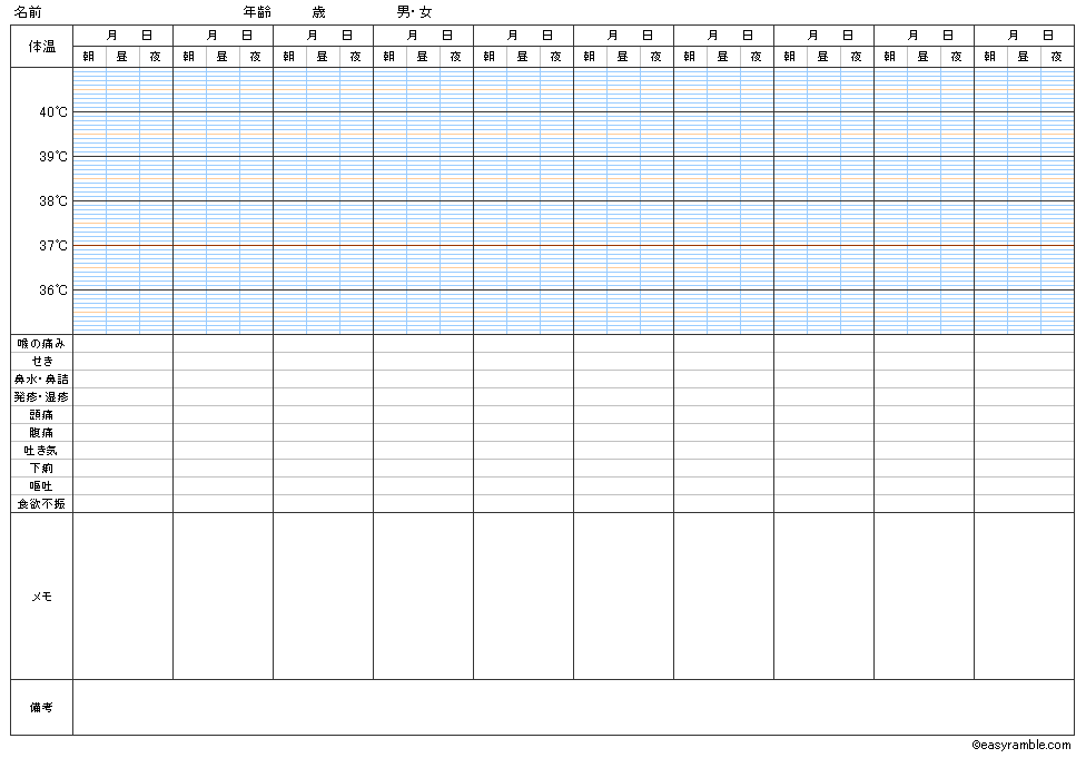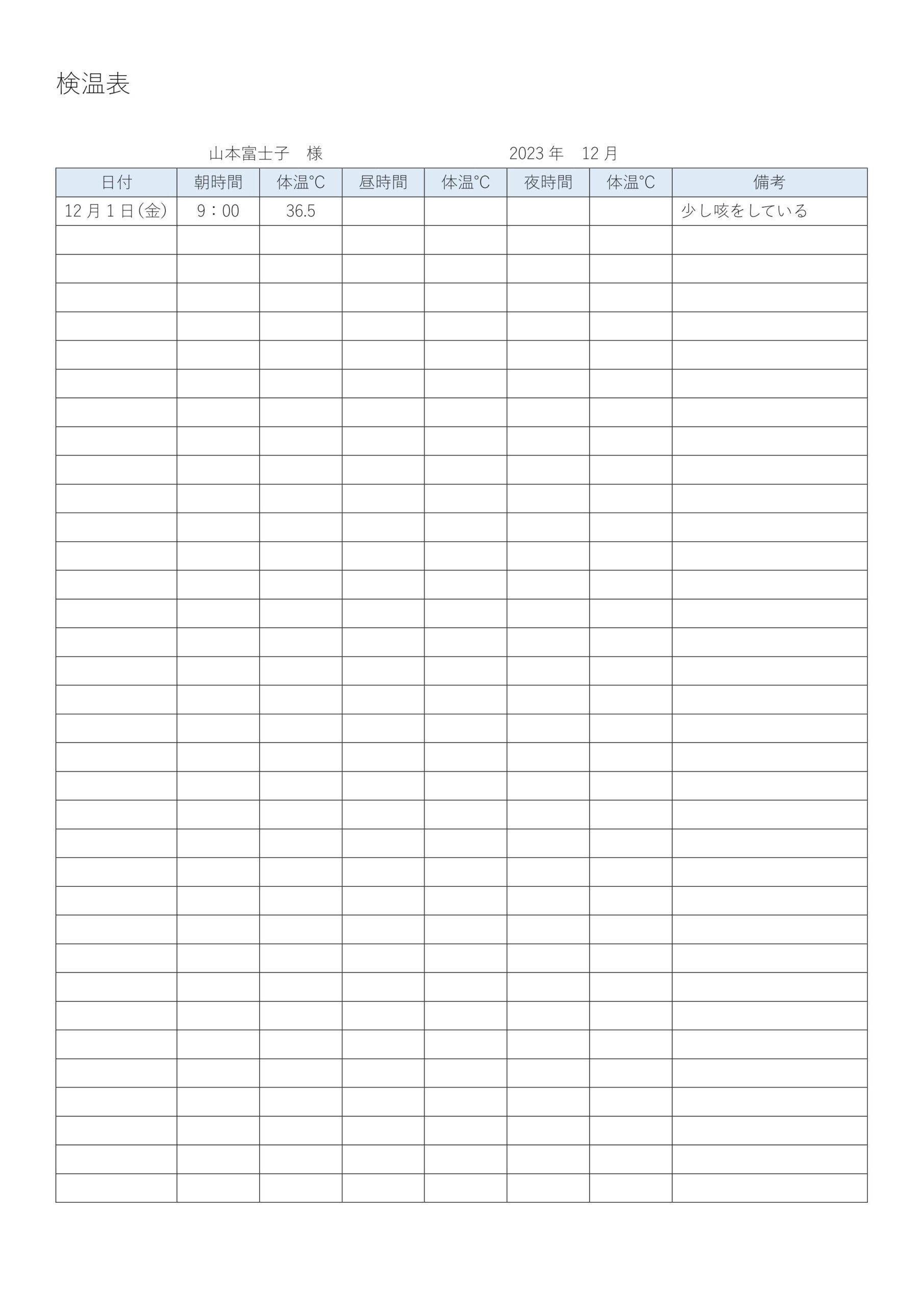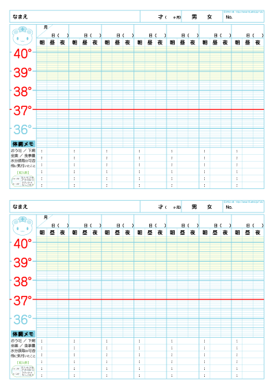 検温表 体温表テンプレート – hubble-bubble.siteハブル・バブル。
