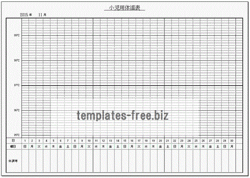 小児用体温表 日付記入と1ヵ月間タイプ- 無料でダウンロードできるフォーマット テンプレート・雛形。
