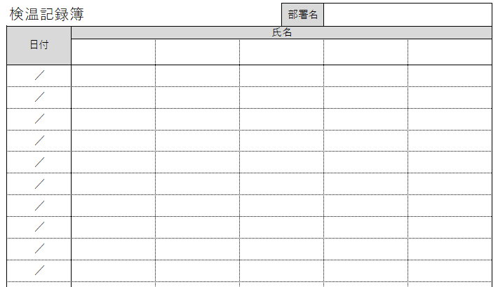 検温表 Excel・Word・PDF のテンプレート・介護施設や会社と学校・保育園や幼稚園などでも利用する事が可能な見や。