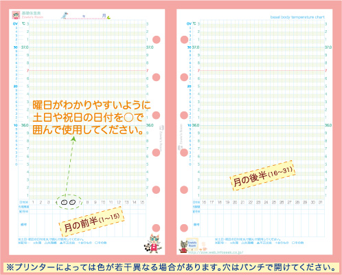 シンプルで大人カワイイ基礎体温表 BBTA5、A4サイズ無料ダウンロードF-MEMO。