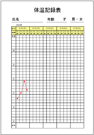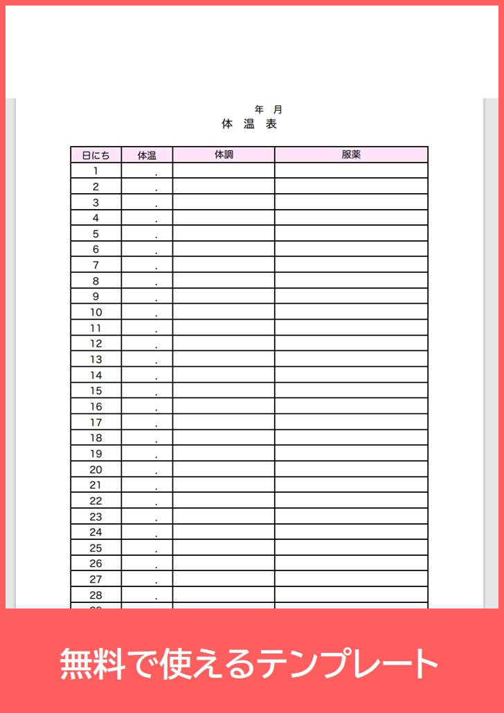 体温表 子供から大人 Excel・Word・PDFの手書き用・基礎・記録の体調管理表の無料テンプレートをダウンロード。