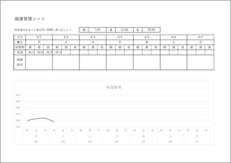 体調管理シート 体温グラフ・1週間ビジネス文書 テンプレートプリントアウトファクトリーMyRICOH マイリコー。