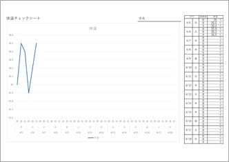 1週間「体温表」の無料テンプレート!エクセルやワードの表タイプ!記入して簡単に折れ線グラフのように仕上がる!可愛いだらけ。