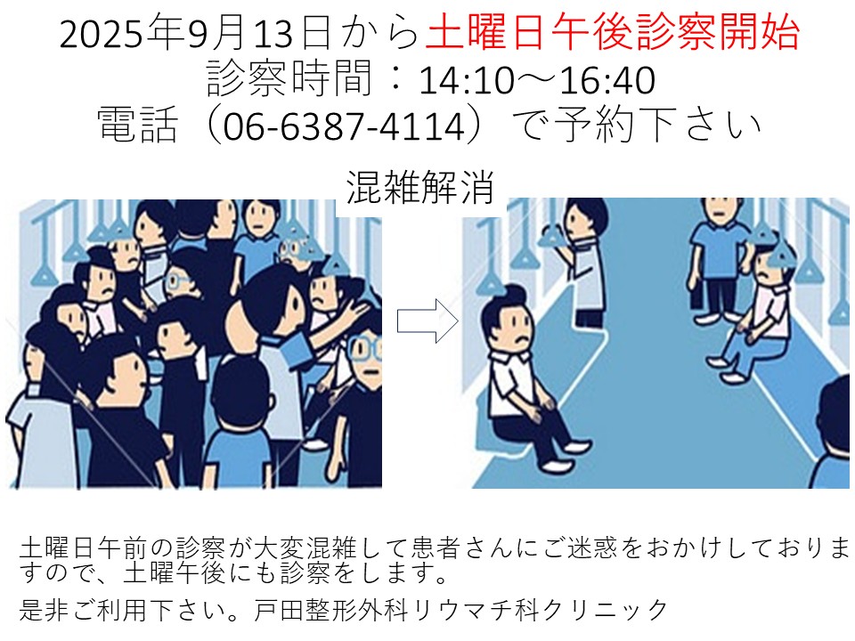 土曜日午後診察開始します 2025年9月13日~- 貴晶会戸田リウマチ科クリニック。