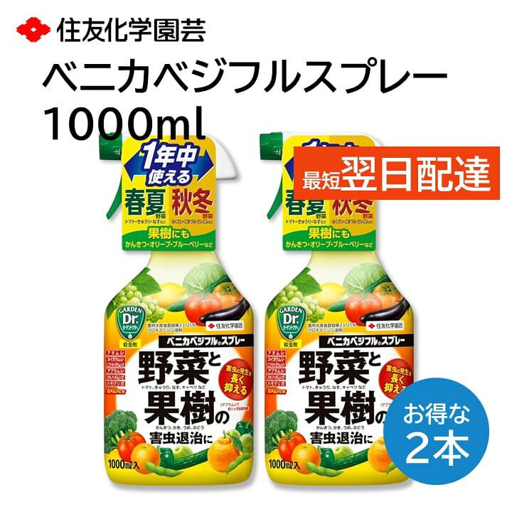 楽天市場 ベニカベジフルスプレー 1000ml 2本セット 殺虫剤 野菜 果樹 害虫退治 発生を抑える アオムシ カイガラムシ アブラムシカキノヘタムシガ ハモグリガ ウリハムシ コガネムシ カメムシ トマト きゅうり なす キャベツ ねぎ オリーブ うめ かき ぶどう もも など。