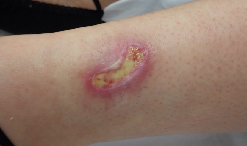 下腿の低温熱傷です。 湿潤療法- 粉瘤 アテロームこおりたひろ整形形成外科クリニック - 痛みの少ない粉瘤治療で多数の実績大阪。