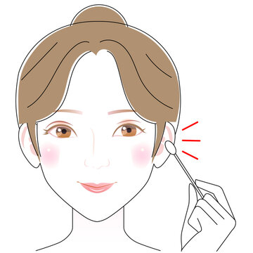 綿棒で耳かきをする女性のイラスト素材81894584- PIXTA。
