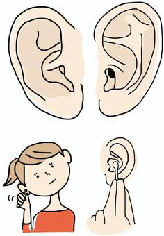 耳つぼピアスイヤリング耳鼻科聞く聴く聴覚耳垢:イラスト無料。