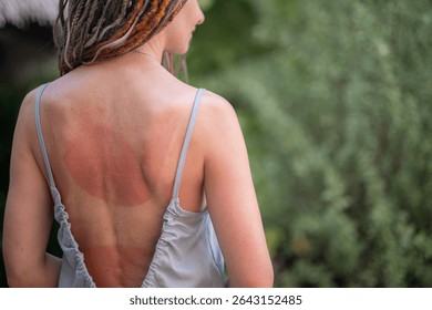 夏休みの白人少女の胸と肩の日焼け女性の肌が焦げたPremium写真。