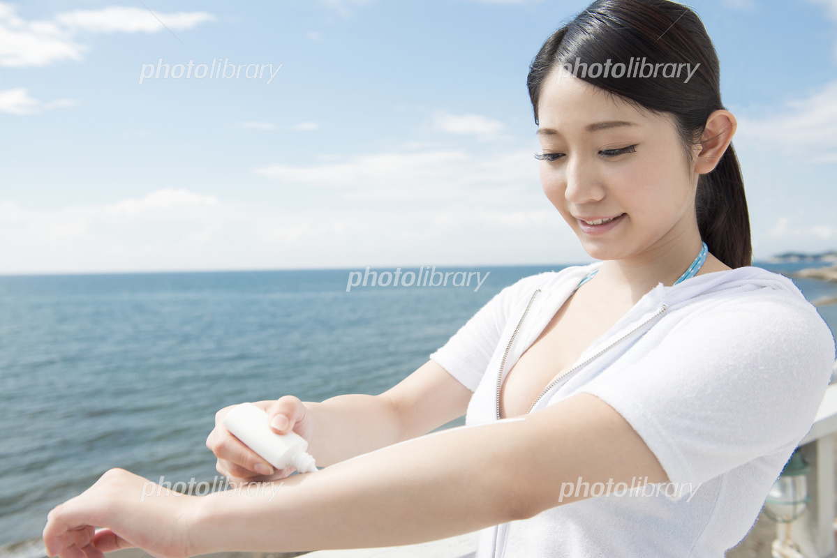 日焼け止めを塗る日本人女性・夏の紫外線対策人物 の写真素材251819825- イメージマート。