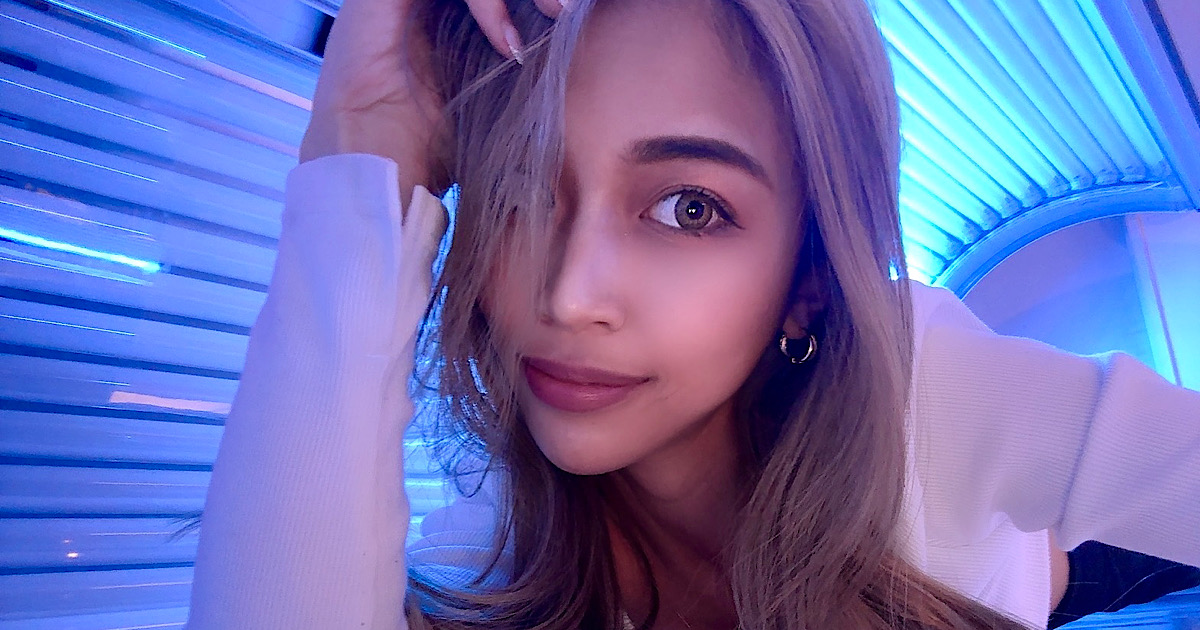 日焼けサロンで日焼けする女性の写真・画像素材-Snapmart スナップマート。