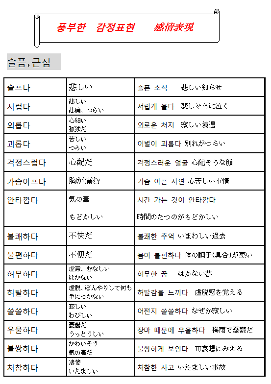悲しい』を韓国語で? 슬프다 活用と語尾一覧15種類をおぼえる!まるまるコリア~もっと韓国。