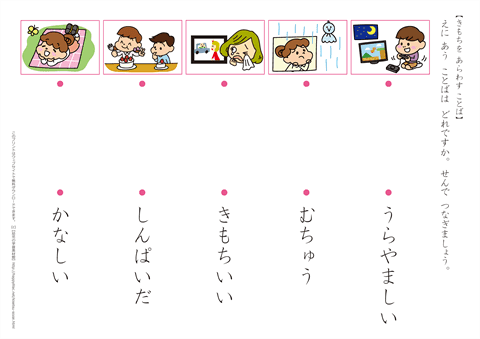 気持ちを表す言葉 知育プリント 無料ダウンロード・印刷幼児教材・知育プリントちびむすドリル 幼児の学習素材館。