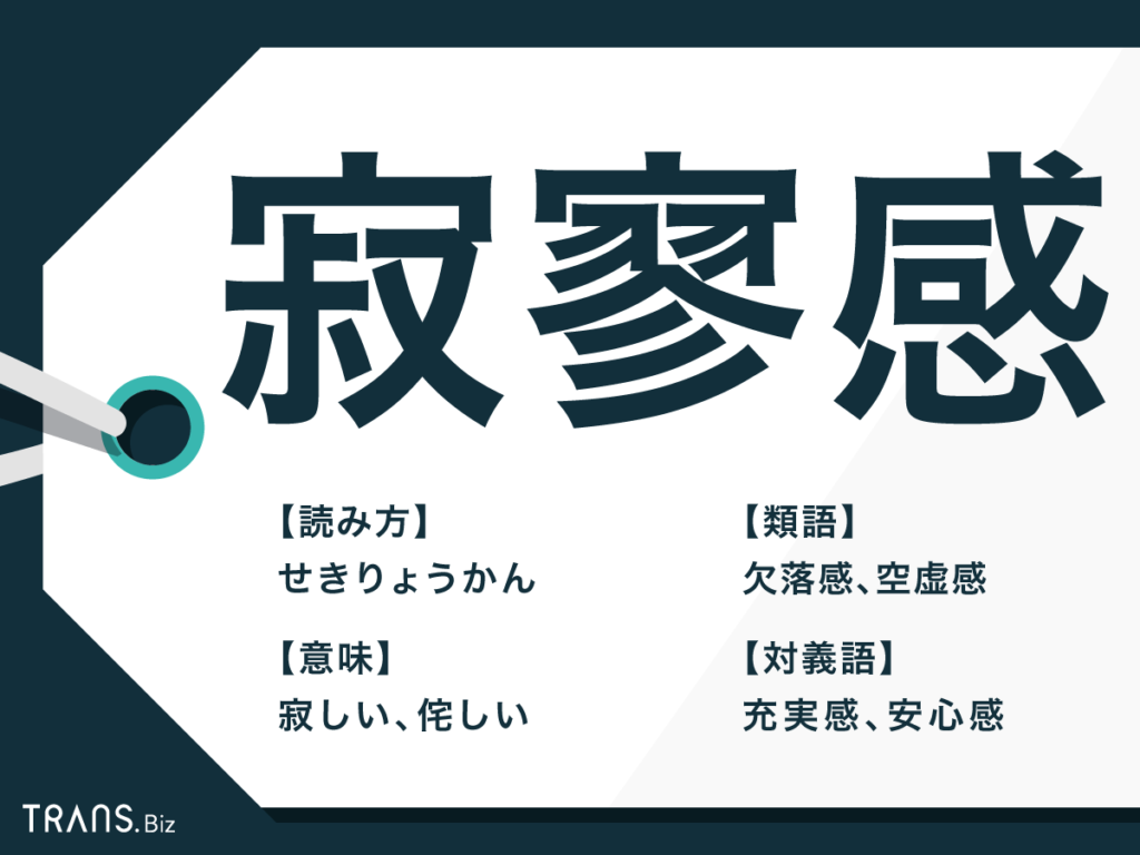 寂寥感」の意味と使い方は?類語・対義語と英語フレーズも紹介TRANS.Biz。