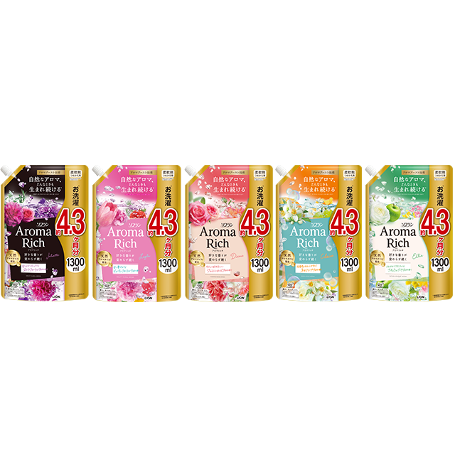 柔軟剤アロマリッチ 好きな香りがずーっと変わらないライオン。