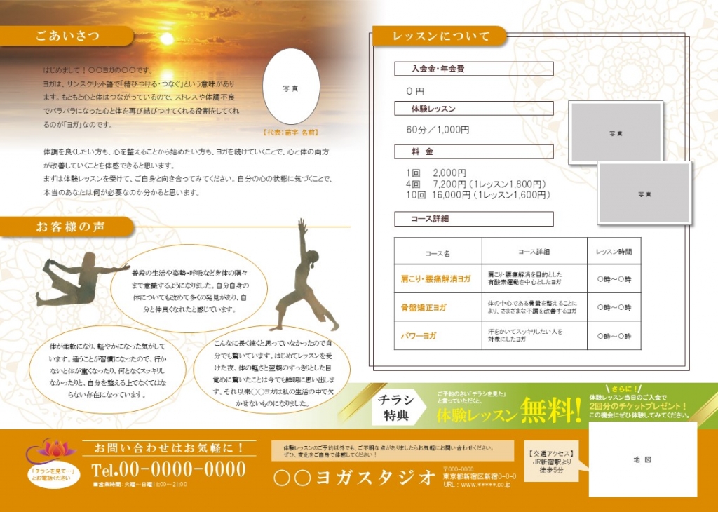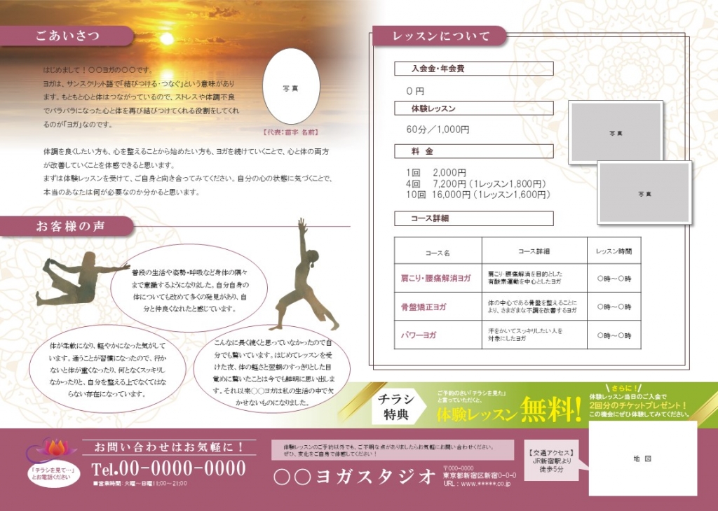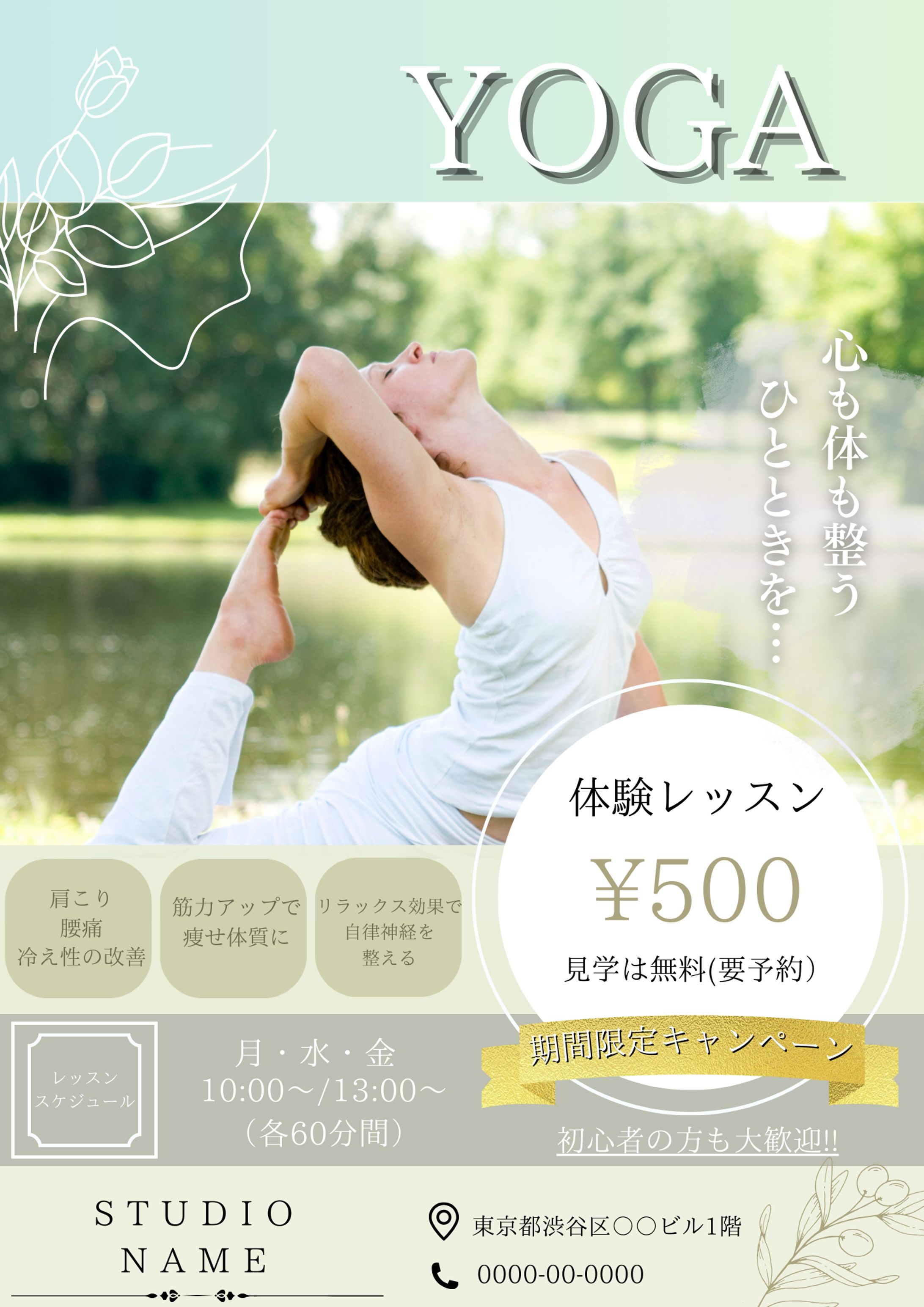 ヨガ_体験レッスンチラシ・フライヤーヨガの無料デザインテンプレート印刷のラクスル。