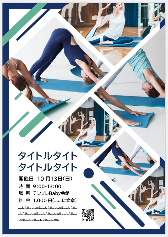ヨガ教室、体験、スポーツ、習い事、A3ポスター&チラシ、WordWordの印刷物・チラシ無料テンプレートなら「テンプレBaby」。