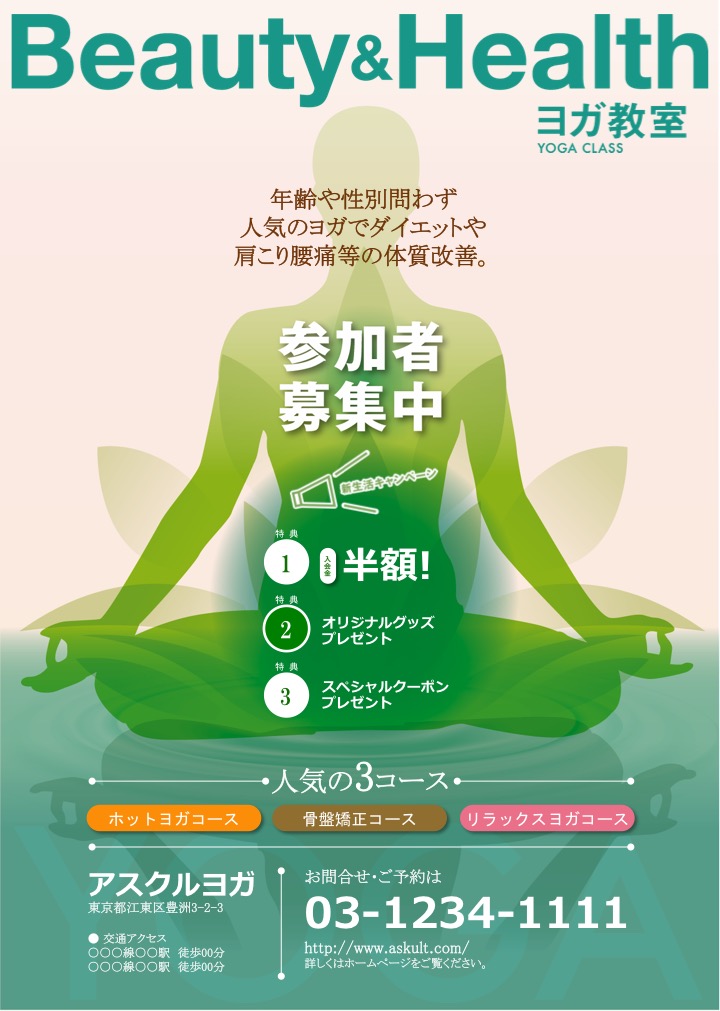 ヨガの会員募集で使えるチラシデザインと活用方法ラクスル。