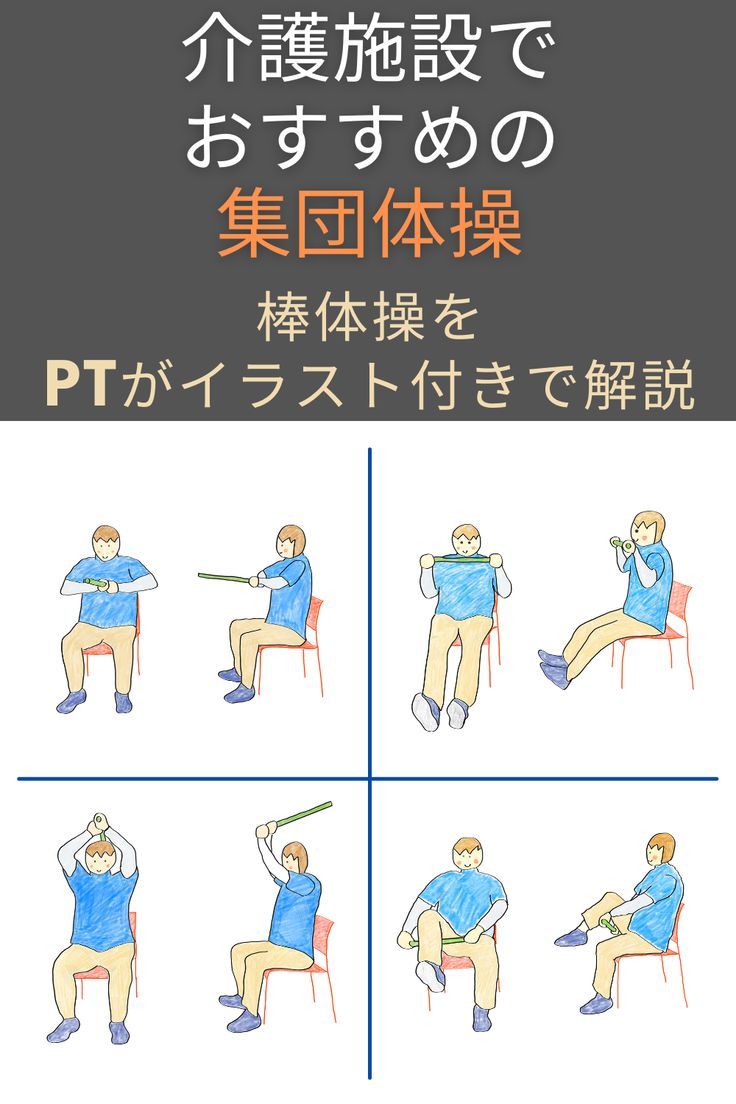 介護施設で運動するなら『棒体操』がおすすめ!実際にデイサービスや老人ホームで実践している内容を現役PTがイラスト付きで解説。