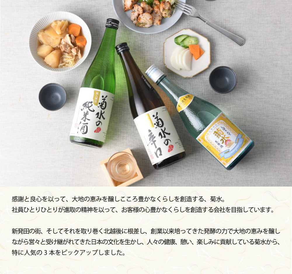菊水 入門 飲み比べセット 720ml 3本 しぼりたて生原酒 菊水の辛口 菊水の純米酒 初心者 菊水酒造 お酒。