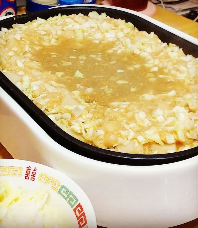 脂質3g ワンパンで、明太もんじゃ @koba__cook_←簡単低脂質レシピをご紹介🧑🏻🍳✎材料 2人前・カットキャベツ キャベツ1 2玉・シーフードミックス 100gくらい ・明太子 1本 ☆米粉 小麦粉・片栗粉◎30g ☆水 250g☆ウスターソース。