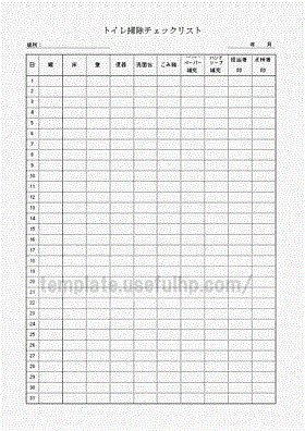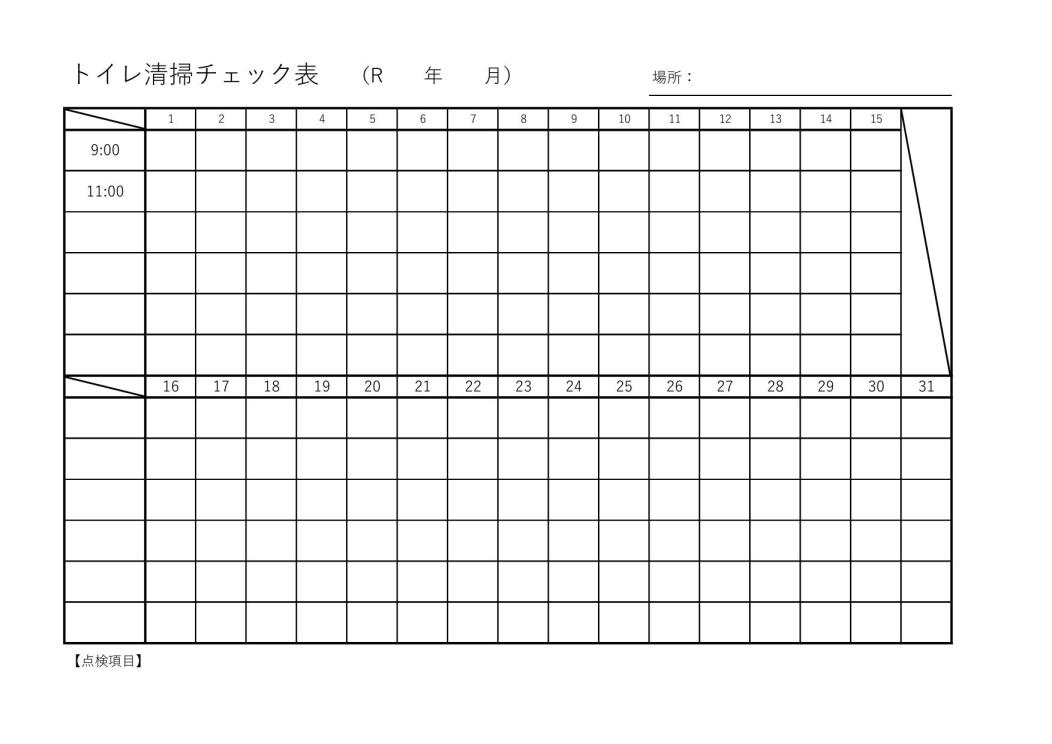 トイレ清掃点検表 月次 テンプレート無料・Excelファイル・A4・タテ・日毎プラスブログ。